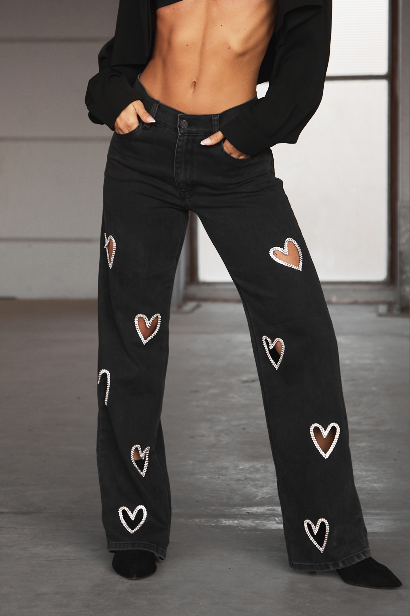 בדי גינס איכותיים שעברו שטיפה ושפשוף מיוחדים, חיתוך בלייזר והדבקת אבנים מנצנצות. הכל בעבודת יד.
