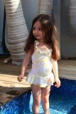 בגד ים לייקרה איכותי לילדות בהדפס קייצי תואם לקולקציית דקלים