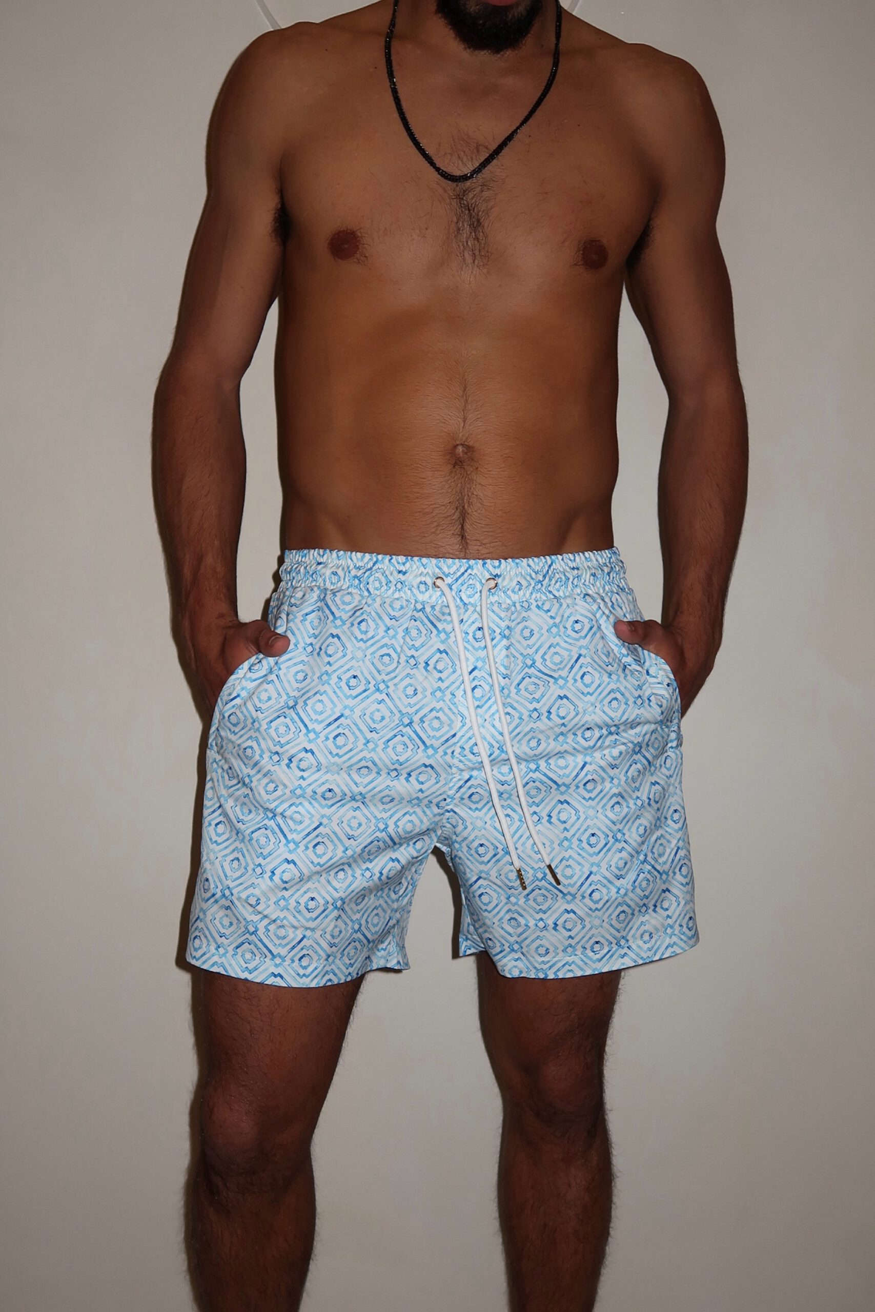 בגד ים ניילון איכותי לגברים בהדפס קייצי.